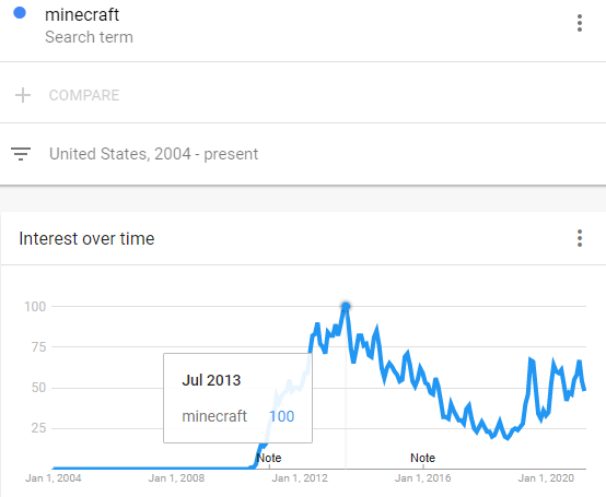 All of his first videos were piggy backing off of the hugely popular video game Minecraft. According to Google Trends, Minecraft peaked in popularity in July, 2013, a year after this video.